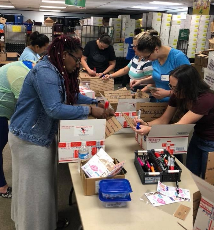 A big thank you to Cindy H, our of our angels, and the folks from Citi. For the past month they have been collecting goods for our women serving overseas. They held a collection last year but this year they tripled their donation! Beside collecting and donating the items, the Citi volunteers went to our warehouse to sort, tape, decorate boxes, write thank you notes and even assembled flip flops.