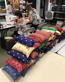 A number of the Angel's gathered this week to stuff pillows for the troops.We want to thank Lorraine from New Mexico who sewed all the pillows. The stuffed pillows will be sent to the soldiers so they have something soft to lay their head on and dream of home while they are serving on the front lines.